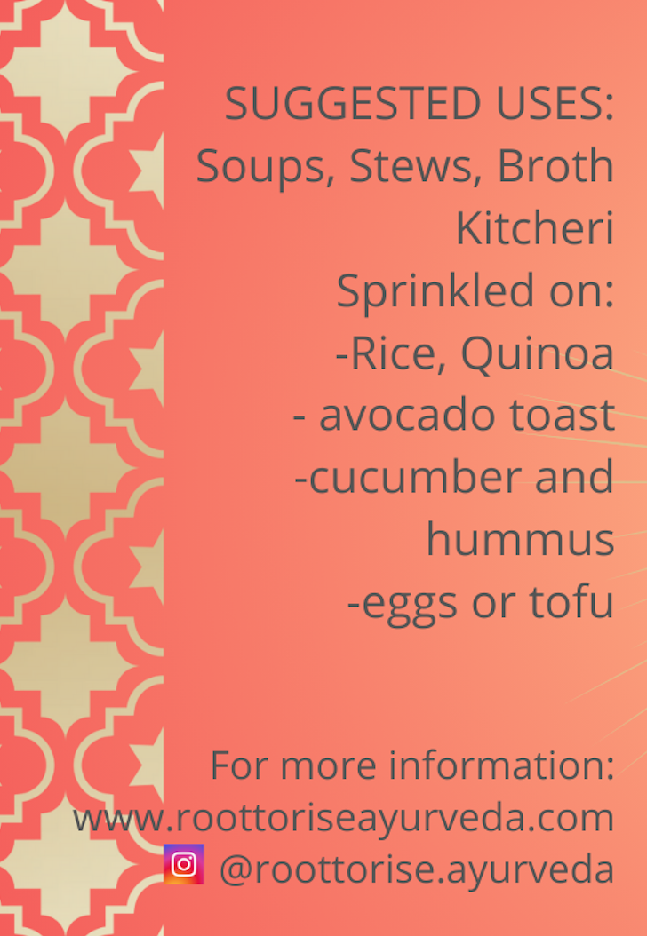Shop Categories: Select a Category R2R Kitchen R2R Botanicals R2R Body R2R Ebooks Shop R2R Kitchen | R2R Botanicals | R2R Body | R2R Ebooks | Tri-Dosha Spice Blend $15.00 Vata Spice Blend $15.00 Pitta Spice Blend $15.00 Kapha Spice Blend $15.00 Rasna Al Hanout $15.00 The Great Green $15.00 Lavender Love $15.00 Rosey Ohh... $15.00 MenoGlow $12.00 Vitali-Tea $12.00 Sunny Tea-Light $12.00 CCFT - Traditional Ayurvedic Digestive Tea $12.00 The Queen Tea $12.00 Aphrodi-Tea $12.00 Chillixer $12.00 A Spicy Affair Ebook $5.00